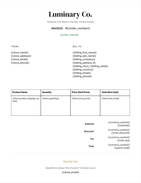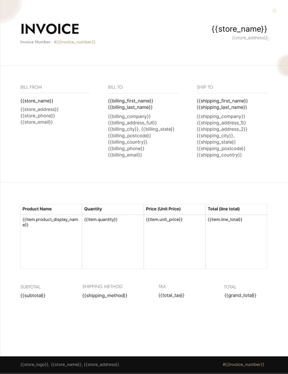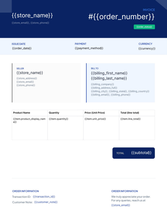 Pull customer details, product info, order totals, and custom fields directly into your PDFs.